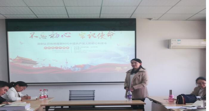 10月29日,数学与应用数学系党支部书记王芳积极响应学校开展第二批“不忘初心、牢记使命”主题教育,在理科楼A505为支部党员讲了《不忘初心 牢记使命---深刻认识和把握新时代中国共产党人的初心和使命》的党课。习近平总书记在党的十九大报告中指出,中国共产党人的初心和使命就是为中国人民谋幸福,为中华民族谋复兴。