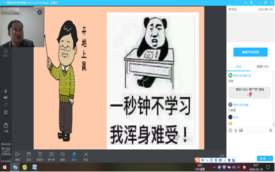 谭老师每天都在QQ群里与学生积极互动、答疑、讨论,除了学习以外也经常了解学生的生活、心理状态,并强调作为学生单纯的宅在家里不学习,虽然为疫情防控做了贡献,但是不符合学校和老师的要求;只有宅在家里努力学习,提升自我,为以后更好的报效国家才是真正为国做贡献。谭老师还经常和同学们谈到,你们现在要多想想抗疫一线的医护人员和工作人员,没有岁月静好,只是有人在替我们负重前行。通过与学生的交流,培养了学生的家国情怀,做到了理论教学与思政教育两不误。