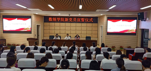 2019年4月9日,数学与统计学院在理科楼A200举行新党员宣誓仪式,数统学院党委书记张宏伟,特邀党建组织员黄凤英出席会议,数统学院本科生、研究生全体党员参加会议,会议由学院党委副书记马丽主持。