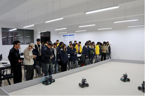 在卓越工程师学院,长沙同升湖高级中学的师生们参观创新创业教育展厅,深入了解学校创新创业教育体系、学生创业典型、科技发明作品、创新创业竞赛等相关内容。随后,在工作人员的引导下走进机器视觉与控制系统创新工坊、无人机与智能移动机器人创新工坊,近距离观摩各类机器人及实验环境,并通过实际操作加深印象与理解。