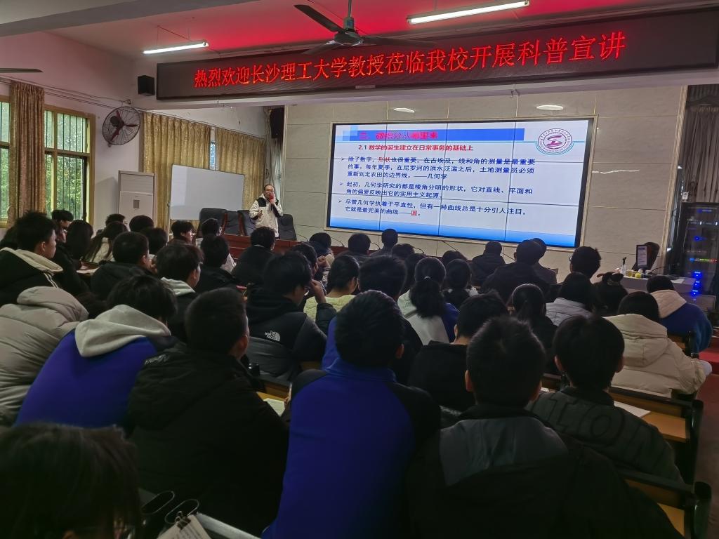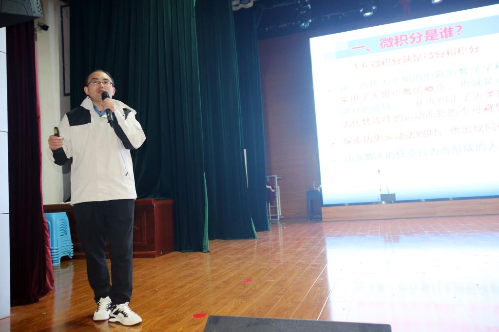 座谈会之后,熊寿遥和郑忠辉分别为两所中学的师生开展了数学科普知识讲座和招生宣传。熊寿遥以“微积分的力量——探索数学的无限可能”为题给两所中学1400余名师生作了一场数学科普知识讲座,他从微积分是谁、微积分从哪里来、微积分到哪里去等方面详细介绍了微积分的定义、产生背景、发展进程和作用,他通过生动的案例和形象的比喻,让师生们深刻感受到了微积分在科学研究、工程技术以及经济金融等领域的广泛应用和巨大价值。