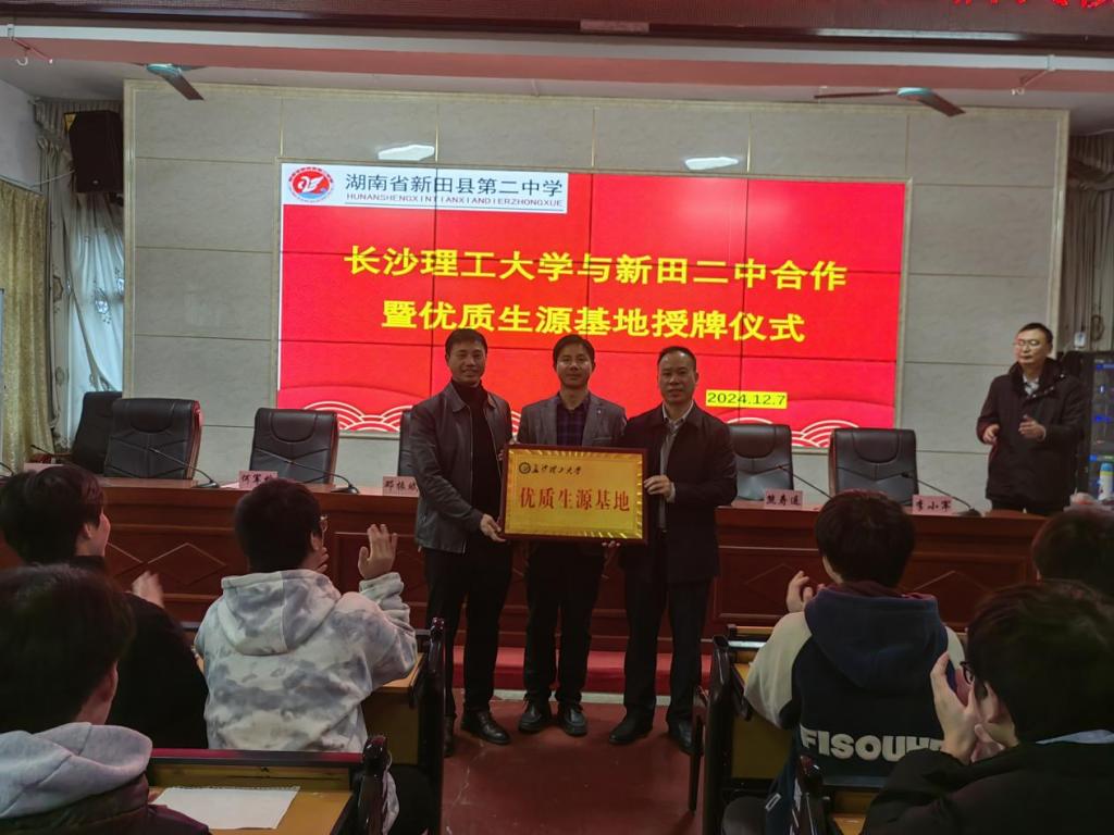 12月6至7日,数统学院党委副书记兼副院长郑忠辉、院实验中心主任熊寿遥副教授,文学与新闻传播学院魏明革副教授赴湖南省新田县第一中学和新田县第二中学举行授牌仪式暨招生宣讲。新田县教育局党组书记、局长邓振斌及相关领导,新田县第一中学和新田县第二中学领导班子出席授牌仪式,两所中学的1400余名师生聆听科普知识讲座和招生宣讲。