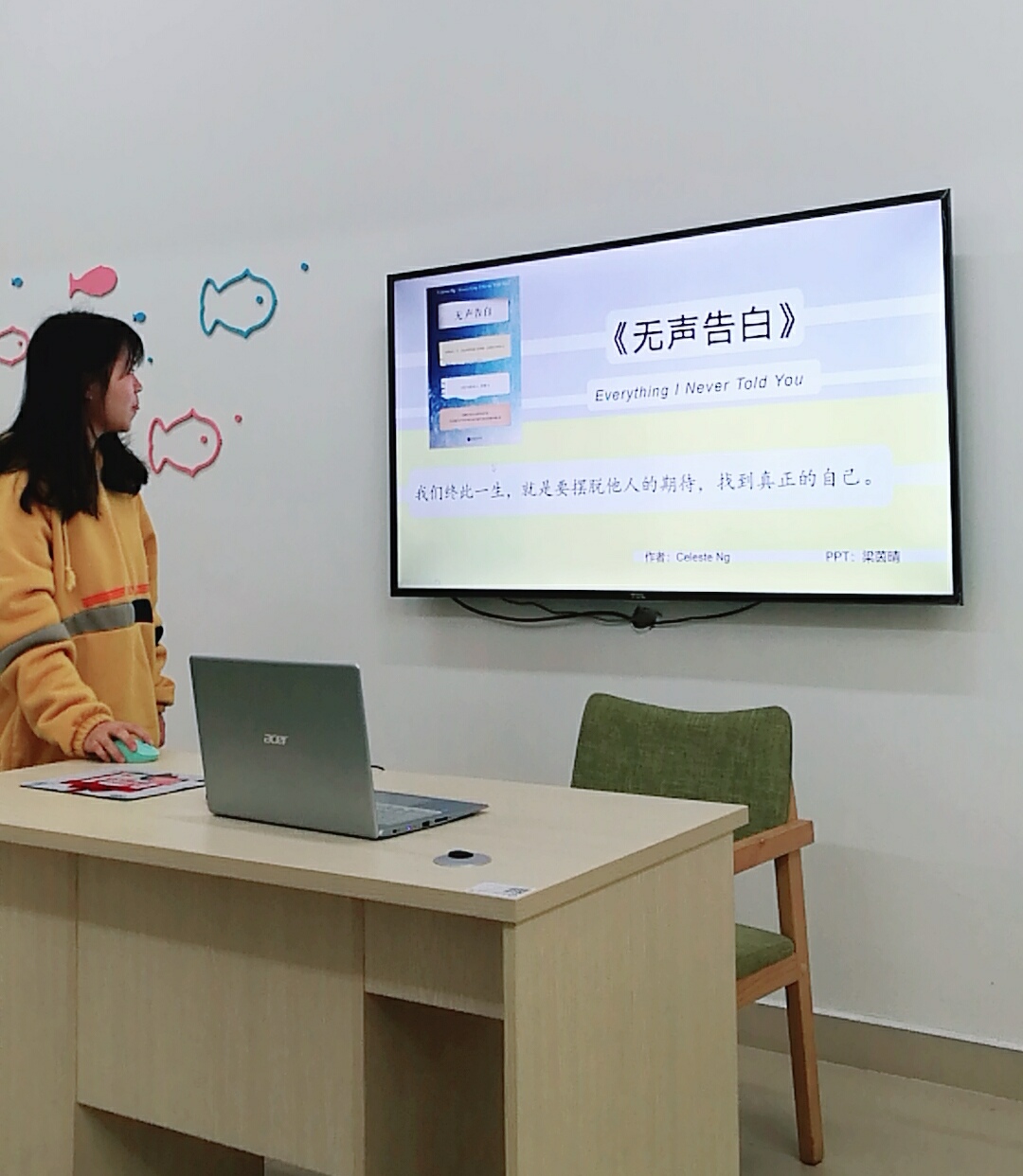 本次例会分为三个阶段,第一个阶段,部长贺珍进行本学期的部门工作任务安排,讲解工作中的要求和注意事项、上学期的阳光启航活动的反馈以及“阳光朋辈评选”的注意事项。会议中还提到了4月份心理互助员培训以及“525心理健康活动月”,让大家对整个学期的工作安排有了一个整体了解。为了部门之后更好地发展,部门内对干事重新进行工作分配,部长和副部长分别介绍了不同分工的工作内容。第二个阶段,部门成员以PPT的形式分享自己寒假的读书心得,这次寒假读书的推荐书目是《无声告白》和《被讨厌的勇气》,大家自由选读。