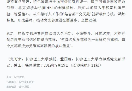 (张可荣:永利集团88304官网教授;董国朝:永利集团88304官网力学系党支部书记、博士;稿件原载于2019年9月19日《长沙晚报》11版)