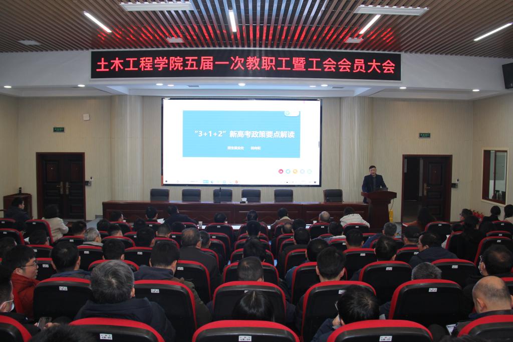2021年1月26日下午,土木工程学院在工科二号楼召开了第届第次教职工暨工会会员大会,校党委委员、副校长刘朝晖,招生就业处副处长田向阳及全体教职工参加大会。会议由院党委书记丁丹主持。