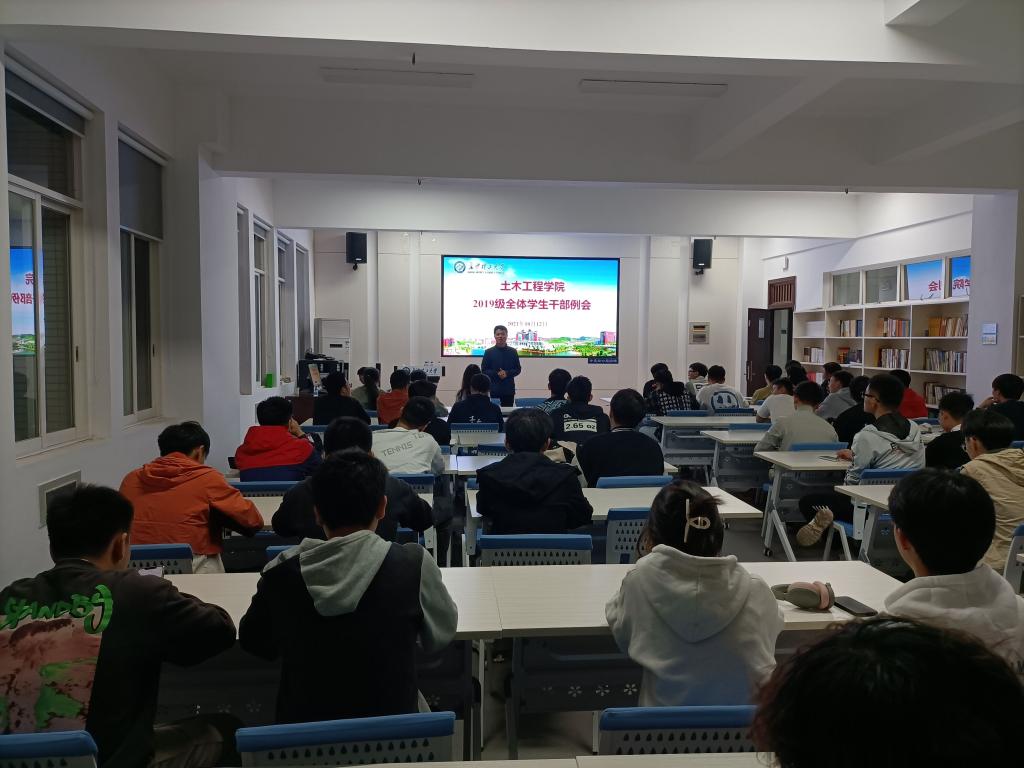 10月12日晚,土木学院2019级全体学生干部例会在工A304顺利召开。会议由院学工办龙承运老师主持,年级全体学生干部参加。