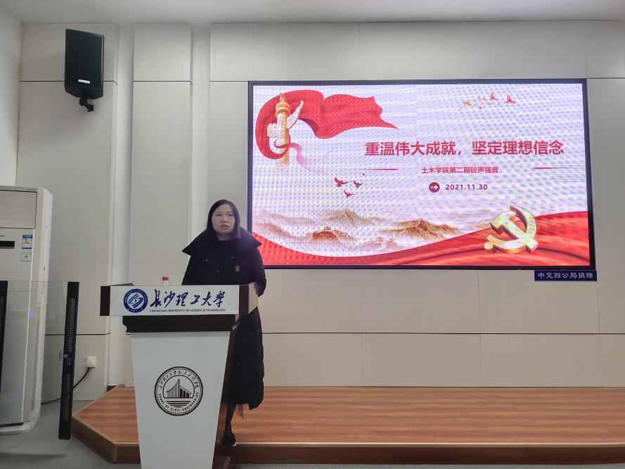 11月30日下午,土木工程学院学生党总支在工二A304举办第二期“砼声强音”理论学习交流会,主题为“重温伟大成就,坚定理想信念”,活动由桥梁党支部蒋镐宇主持,学生党建辅导员刘文成和本科生和研究生各党支部代表70余人参加。