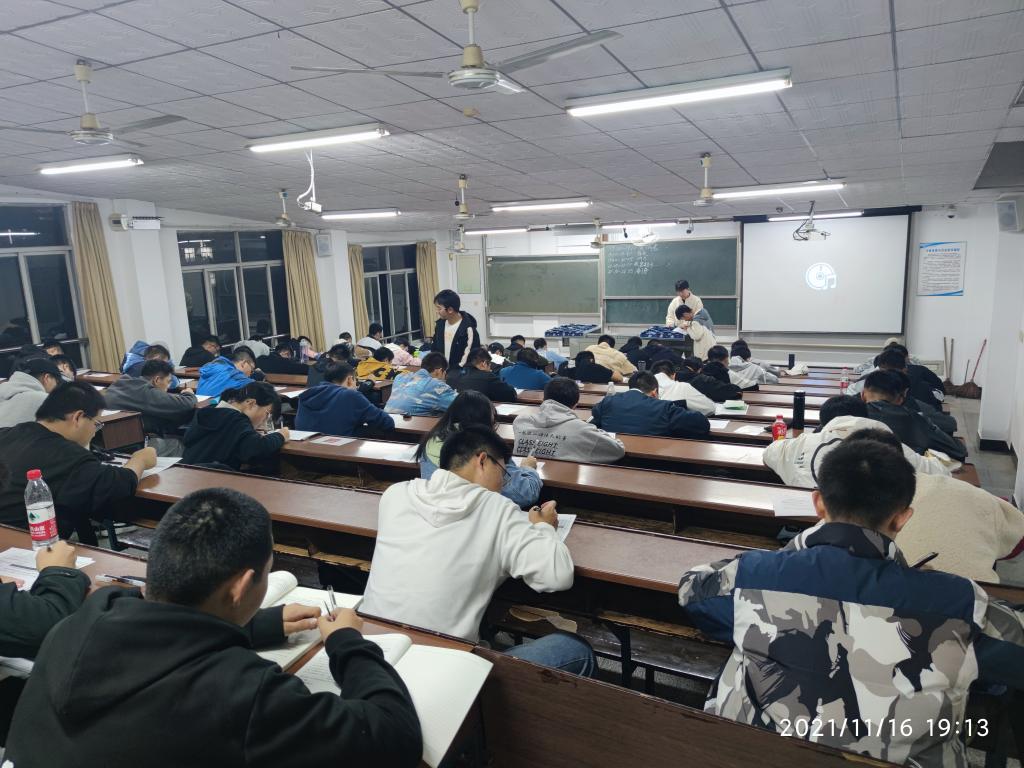 临近英语四级考试,为了帮助2021级新生尽快熟悉四级考试的考试题型,解决同学们在英语学习中所遇到的实际困难,营造良好的学习氛围。过去一个多月里,土木学院共组织七次英语四级模拟考试考试于每周二或周日晚在各班晚自习教室举行各班班主任、年级辅导员、下班党员和团干组织进行,包括监考,收发试卷,批改试卷等工作