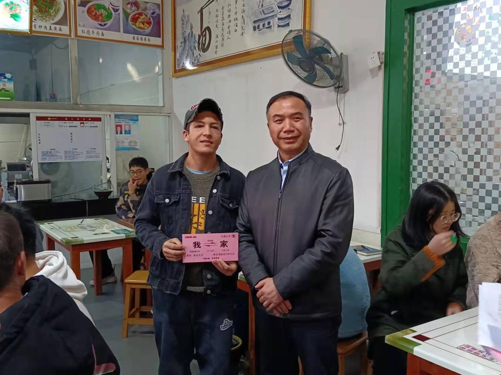 在“送温暖送祝福”环节上,江河为每位少数民族同学赠送了一张学院定制的寒假返家的专属爱心火车票,并表示学院将启动党员“一帮一”学业帮扶计划,为同学们提供最切实的帮助和服务。