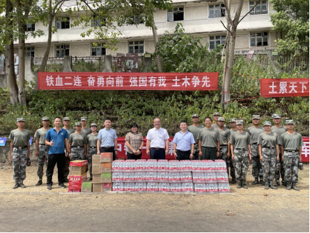9月8日上午,我院党委副书记黄阿明同优秀校代表杨继武一行为军训师生送去清凉解暑饮料和备用药品等物资,进一步保证了军训工作安全有序开展。