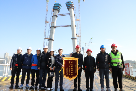 本次观摩见习活动分为两个参观区域,首先,大家在项目负责人的陪同下前往项目智慧工地党建管理中心参观学习,了解了项目各参建单位及项目工程概况,并学习了项目关键施工工艺流程、工程模型、企业发展史及党史等知识。随后,桥梁工程系师生前往该项目水中施工区域的主塔参观,水中主塔采用“湘江绣月”设计方案,意为“在湘江上绣一轮圆月”,抬头便能看见明月当空,低头则是星河倒影。在主塔下钢栈桥上远眺,南边是三汊矶大桥,北边是月亮岛湘江大桥,本桥与邻近两座桥梁相互映衬。