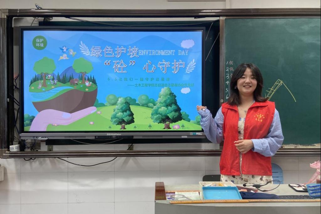 随着53个“世界环境日”的临近,土木工程学院的学生党员志愿者们走进天心区龙湾小学2年11班,为小学生们带去了一堂生动的边坡防护与环境保护课。本次活动通过互动游戏、现场演示和创意设计等多种形式,旨在培养学生们的环保意识并普及边坡防护知识。