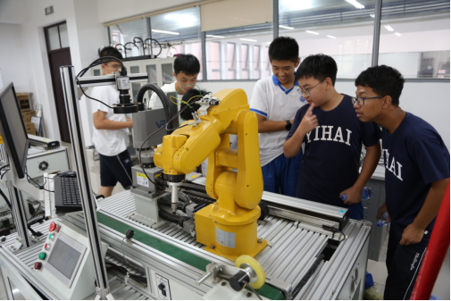 在老师和志愿者的引导和讲解下下,怡海中学的师生们首先参观了科创中心的3D打印机、结构设计训练室、先进成图训练室和电气学院的机器人实验室等地,实地感悟了永利官网在科学研究、技术创新、学科竞赛等方面的成果,让中学生们对科技创新有了更深刻的认识,激发了他们热爱科学、探索未知的兴趣。随后,师生们来到“三全育人”教育基地。师生们在讲解员的带领下参观了教育基地,同学们积极参与互动体验,感受大学校园文化的魅力。