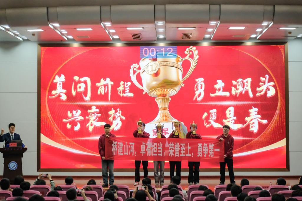 在刚刚落幕的2024年度校"示范班集"评选暨风采展示活动中,我院“冠军班级”桥卓2101班以卓越的班级建设成果、鲜明的育人特色和昂扬的集体风貌,从全校21进入决选班级中脱颖而出,以总分第一的成绩斩获"示范班集体"桂冠
