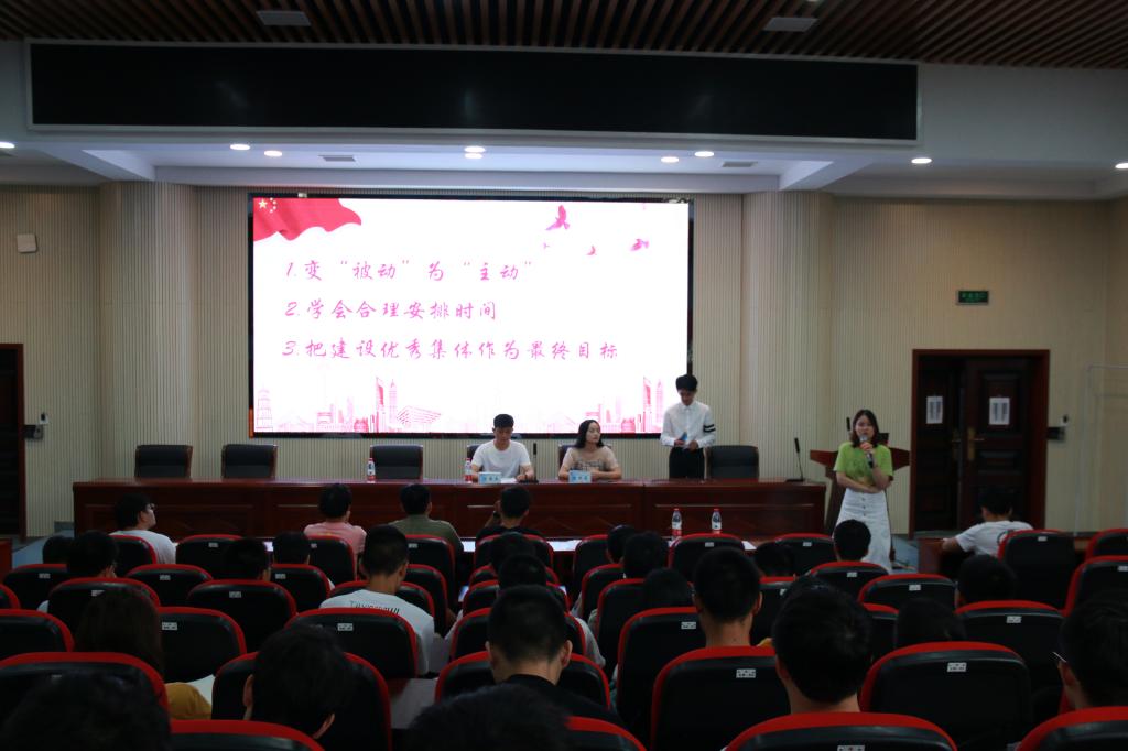 晚上,桥梁学生党支部书记兼桥梁1702班班长宋俊从明确自己的学生定位、做好本职工作等方面分享了自己如何做好班团建设的心得。