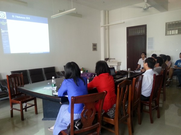 2013年5月21日下午2:15,土建学院力学系在云塘校区工科2号楼A423(力学系会议室),举办了一期名为《流体动力学格子博尔兹曼方法在粗网格下的新碰撞规则》的学术研讨会。这是力学系学术研讨会的第四期,由力学系的潘军博士主讲。潘军博士图文并茂、内容翔实地介绍了流体动力学格子博尔兹曼方法的基本原理,阐述了格子博尔兹曼方法在粗网格下算法不稳定的原因,分享了他本人提出的克服粗网格下算法不稳定的新方法,该方法可保证粗网格、高雷诺数下的算法稳定性,计算速度约比2.8G CPU运算快30倍。