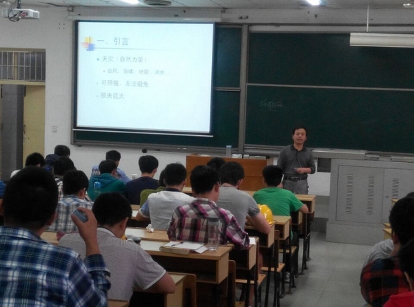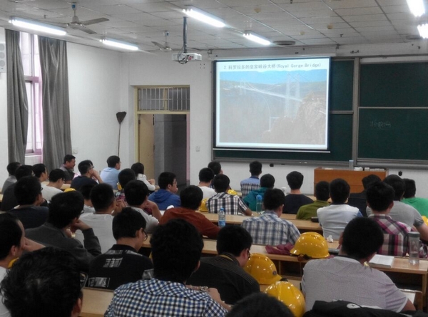 刘建老师为师生就目前桥梁安全现状等方面做了详细介绍,并通过一个简短但生动反映桥梁安全现状的视频引出本次讲座主题。讲座的要点了如下:1、桥梁安全的影响因素,包括天灾、人祸;2、解决桥梁安全的方法措施;3、土建工程安全现状和问题;4、结构健康监测;5、沿海地区建筑健康监测;6.健康监测的发展趋势等内容。讲座现场气氛活跃,师生踊跃发言交流,让人印象深刻。