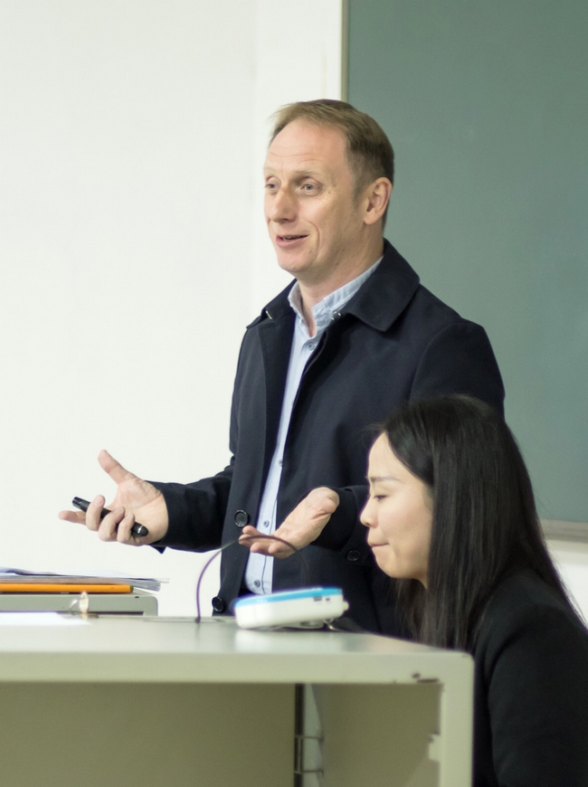 主旨报告之后,Mason先生与在场的师生们进行了交流,并认真详细的回答了同学们的提问。老师们也就自己感兴趣的问题和Mason先生做了积极的讨论。原定的20分钟的交流环节延长到了40分钟,现场气氛很热烈。