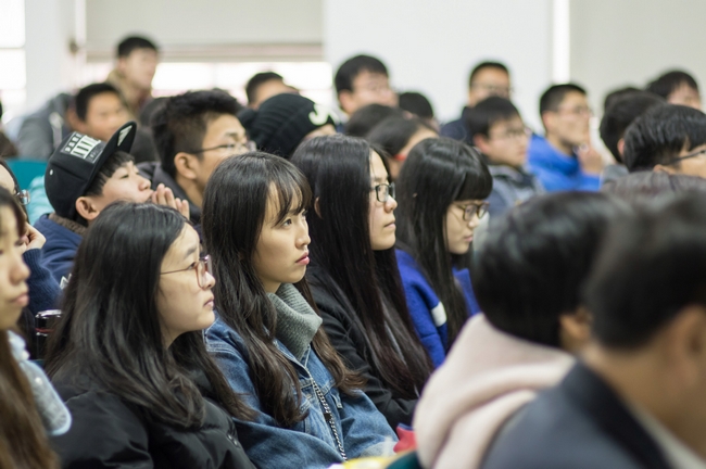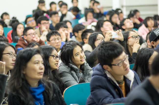 讲座由王媛女士翻译,其准确而不失幽默的表达博得了同学们的阵阵掌声和笑声。