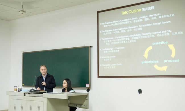 2015年12月1日下午,英国理查德·罗杰斯事务所(Rogers StirkHarbour and Partners)的资深建筑师及合伙人Tim Mason先生应邀来到永利集团88304官网建筑系讲学。在同学们的热烈期待中,Mason先生做了题为《洞察:罗杰斯事务所关于设计的实践、原则和方法论》的学术讲座。讲座由建筑系宋晟老师主持,建筑系主任许建和博士、严钧教授、胡颍荭、肖敏、李苏旻、易学尧、周迪、王蓉等老师参加了此次讲座。益阳城市学院建筑学专业的师生也远道而来参加了此次讲座。