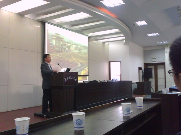 胡高工结合自身的工作实践,用大量的工程实例,就工程项目管理中的“建设工程法律法规”、“国家基本建设程序”、“项目管理的工程实例”、“非开挖顶管施工技术”、“应届生就业方向的指导”等问题娓娓道来,报告内容非常丰富,PPT制作精美,最后还和同学们进行互动,回答了同学们关心的问题,受到师生的热烈欢迎。