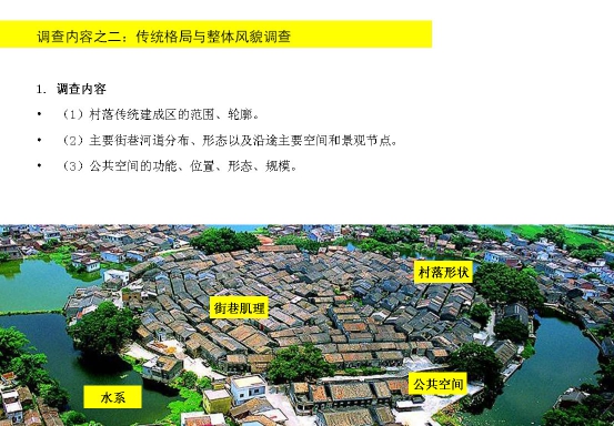 在传统村落的研究步骤部分中,老师以大汖村、阳烂村、高椅村、广西荣地村为例,向我们介绍了村落调查的主要内容,包括村落选址与自然景观环境;村落传统格局与整体风貌;传统建筑;历史环境要素;文献;村域相关资源等。并强调对传统村落有保护价值的资源进行系统而详尽的调查,通过资源目录、资源位置标定、资源图档的形式对村落传统资源加以定义和描述,并建立传统村落档案,这是传统村落研究工作的基础。