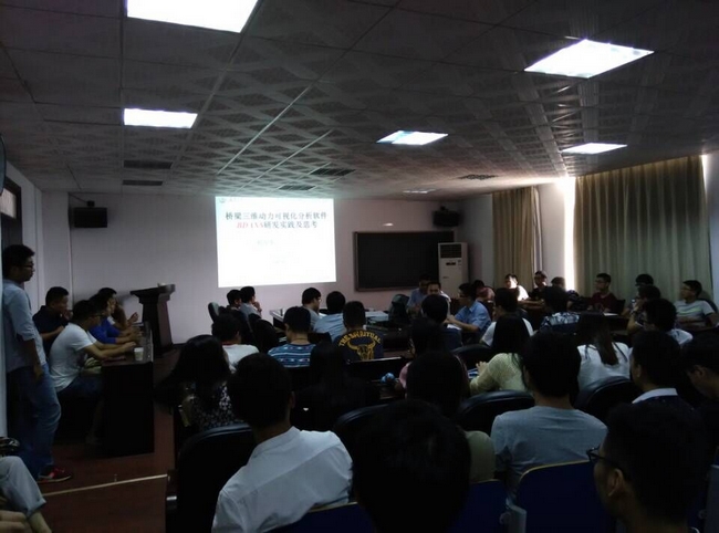 韩教授结合自己的研究之路,与我们分享了其学习和研究要点:打好理论、学好编程、用好有限元。他从“桥梁电算化设计”展开,结合Midas和ANSYS应用情况,介绍了其自主开发的桥梁分析软件BDANS及其相关应用实践。BDANS,即风、地震、随机车流与桥梁交互动力分析软件,这款应用了众多大数据与高端分析模型,经过了极为严谨的编程,可以真实模拟动态车辆经过桥梁时的过程,并在风-汽车-桥梁系统分析与健康监测中都有积极而广泛的应用。诸如上莘大桥,四渡桥等国家大型桥梁工程,都是这款软件的应用工程实例,它们都取得了骄人的成果。接来下长安大学公路学院科研办许老师介绍了长安大学学科建设情况,并与永利官网本科教学进行了对比,对永利官网提出了几点建设性的意见,以期促进两校的友好交流合作。