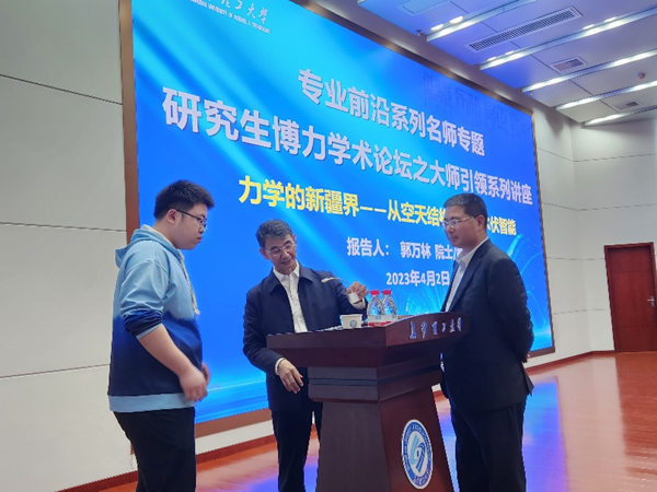 在主题互动交流环节,郭万林院士对师生们的踊跃提问都耐心细致地逐一解答。他鼓励同学们要勇于打破学科界限,促进学科深度交叉融合。