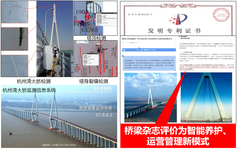 混凝土桥梁占我国85万余座公路桥梁的90%以上,在不利环境和超载等因素影响下,高墩高塔开裂、结构内部力筋锈蚀、压浆不密实、预应力损失等隐蔽病害日益突出,若未及时诊治,将严重危及桥梁服役安全。为此,本团队研发了系列创新成果,包括混凝土桥梁隐蔽病害智能精细诊断技术及装备、复杂不确定影响下混凝土桥梁安全性评价方法、预应力调控补偿的混凝土桥梁隐蔽病害处治技术。成果已在杭州湾跨海大桥、广州丫髻沙大桥、武汉军山长江大桥等100余座桥梁中成功应用,被国际权威专家誉为“开创性工作”,被中国工程院院士聂建国教授、中国交通建设股份有限公司原副总裁侯金龙教授级高工为首的专家组评价为“总体达国际领先水平”。