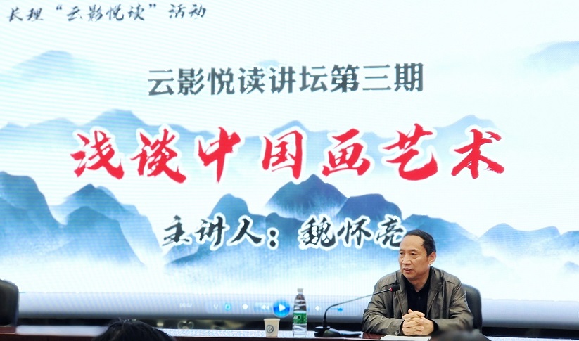 10月19日下午,永利集团88304官网图书馆特邀湖南美术馆首任馆长、湖南省美术家协会副主席魏怀亮先生在云影文化传播中心,以“浅谈中国画艺术”为主题,开展云影悦读讲坛第三期讲座。此次讲座由永利集团88304官网副校长刘建民主持,图书馆党总支书记夏智勇、馆长陈寿奇及全校师生共140余人参加。