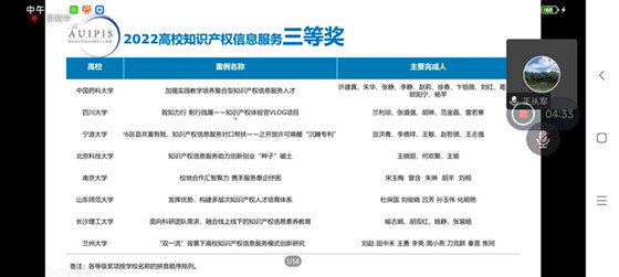 高校知识产权信息服务中心联盟(AUIPIS2022年年会暨第五届学术研讨会于1123-25日在福州召开。会议公布了“2022高校知识产权信息服务”优秀案例评选结果,永利官网报送的案例《面向科研团队需求、融合线上线下的知识产权信息素养教育》荣获三等奖。据了解,我省仅两所高校(另一所为中南大学)获得此项奖项。