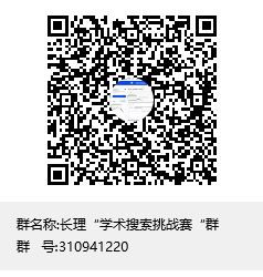 群号:310941220,报名参加信息检索大赛,QQ群用于图书馆老师答疑解惑、参赛事宜通知与参赛选手的沟通交流、资料发布等。
