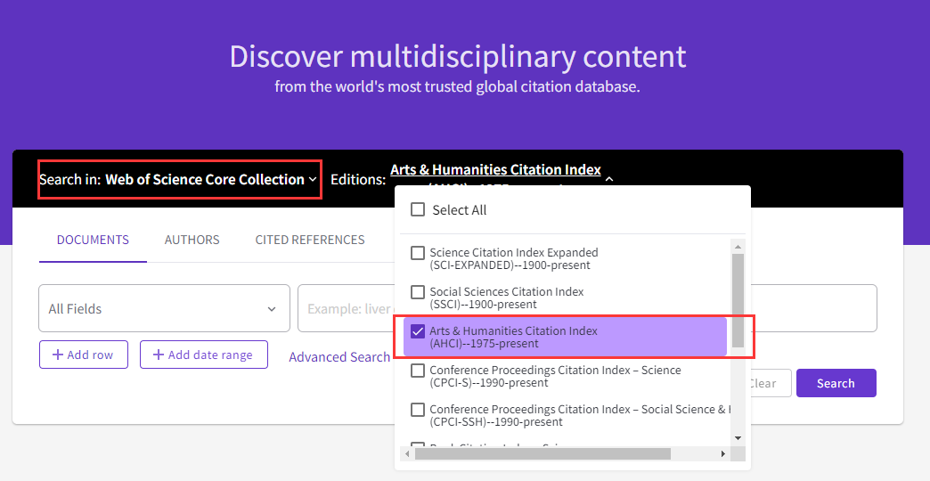 内容简介:Web of Science核心合集中的Arts & Humanities Citation Index(艺术与人文引文索引,简称A&HCI)收录了艺术与人文领域中最具权威和影响力的1800多种学术期刊,涉及了艺术与人文领域的28个学科,收录的内容最早可回溯至1975年,永利官网回溯至2021年。Web of Science核心合集中的Emerging Sources Citation Index(新兴领域引文索引,简称ESCI)包含自然科学、社会科学、人文与艺术三个领域的近8000种学术期刊,每周更新,最早回溯至2005年,永利官网回溯至2015年。A&HCI和ESCI收录了论文中所引用的参考文献,通过独特的引文索引,用户可以用一篇文章、一个专利号、一篇会议文献、一本期刊或者一本书作为检索词,检索它们的被引用情况,轻松回溯某一研究文献的起源与历史,或者追踪其最新进展。