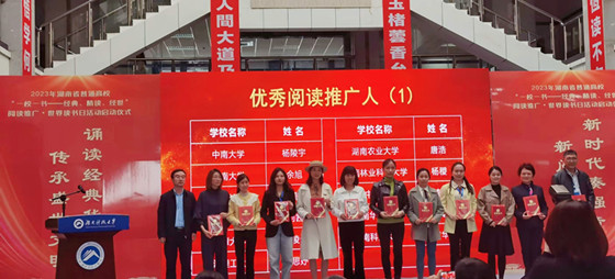 4月26日,图书馆负责阅读推广活动的5位老师赴湖南科技大学参加湖南省普通高校2023年“一校一书——经典、精读、经世”阅读推广·世界读书日活动启动仪式和总结表彰会。此次活动由湖南省教育厅、湖南日报社、湖南省高等学校图书情报工作委员会主办,湖南科技大学承办。