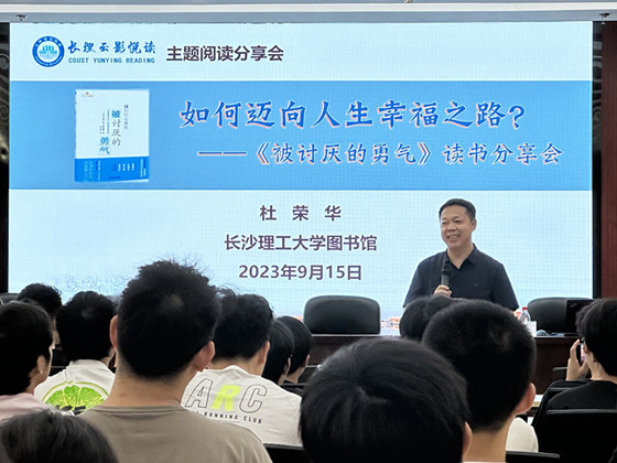 915日晚,图书馆与物电学院电信2207班联合举办了一场以如何迈向人生幸福之路——《被讨厌的勇气》为主题的云影悦读主题阅读分享会。此次分享会邀请到了图书馆馆长杜荣华教授担任主讲人。胡思宇同学担任主持。100余名师生参与了此次活动。