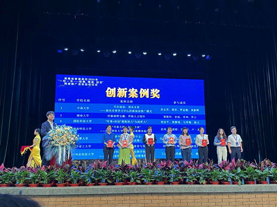 启动仪式上,湖南省教育厅高等教育处主任李绍华宣读了2023年教育厅“一校一书”阅读推广表彰文件,并为获奖单位及个人颁奖;主持人宣读了湖南省高校图工委2023年获奖文件。在2023年全省普通本科高学校“一校一书”阅读推广活动中,永利官网交通运输工程学院2021级交通工程21-1班、计算机与通信工程学院2021级计算机21-6班获省教育厅“书香班级奖”,潘枝花、史亚杰获省教育厅“书香班级奖”优秀指导老师称号,图书馆《凤鸣云影“朗读者”品牌建设与发展》获省教育厅“创新案例奖”,何倚等10人获省教育厅“优秀读书报告奖”,图书馆邓婕获省教育厅“优秀阅读推广人”称号,永利集团88304官网图书馆获湖南省高校图工委“优秀组织奖”,经济与管理学院2022级会计2201班等3个班级获湖南省高校图工委“书香班级奖”,叶鑫、赵勇、胡佳佳获湖南省高校图工委“书香班级奖”优秀指导老师称号。 当天下午,还举行了馆长工作研讨会、阅读推广人经验交流会、湖南省高等学校图书情报工作委员会常委会会议。