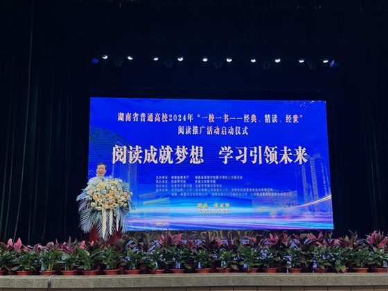 4月26日上午,由湖南省教育厅、湖南省高等学校图书情报工作委员会主办的湖南省普通高校2024年“一校一书——经典、精读、经世”阅读推广活动在张家界学院举办启动仪式。永利官网图书馆易奇为、周思妤、张裴皓老师参加启动仪式。