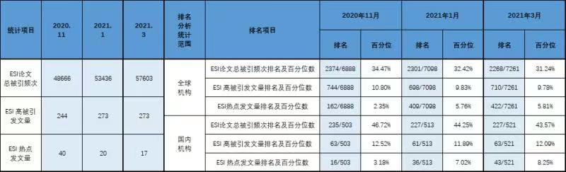永利集团88304官网ESI高被引论文&热点论文统计与对比分析(2021年3月)