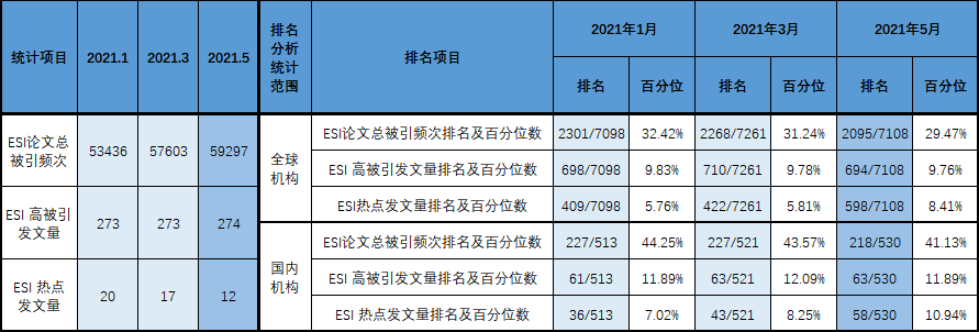 永利集团88304官网ESI高被引论文&热点论文统计与对比分析(2021年5月)