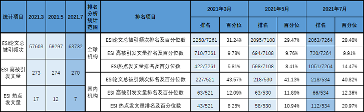 1)永利官网ESI论文总被引频次近三期在持续增加。其中,5月比3月增加1694次,增幅为2.94%;7月比5月增加4435次,增幅为7.48%。