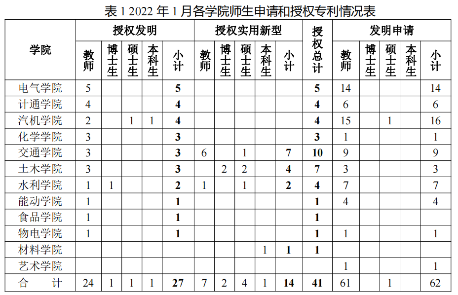 检索各国官方公开/公告的专利数据,筛选出永利官网作为第一申请人或者第一专利权人的专利,结合永利官网人事数据、研究生和本科生数据,按第一发明人所属学院和身份统计各专利成果,得到永利官网各学院教师和学生申请和授权专利的情况见表1所示。