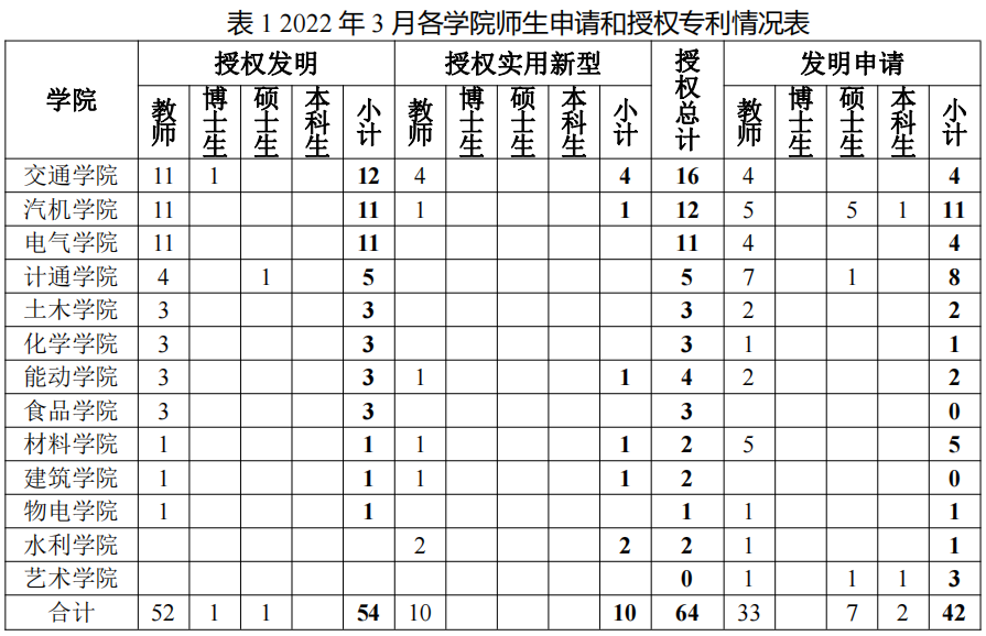检索各国官方公开/公告的专利数据,筛选出永利官网作为第一申请人或者第一专利权人的专利,结合永利官网人事数据、研究生和本科生数据,按第一发明人所属学院和身份统计各专利成果,得到永利官网各学院教师和学生申请和授权专利的情况见表1所示。