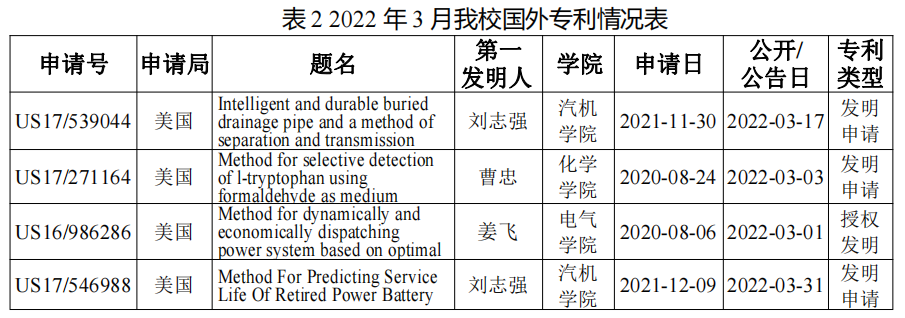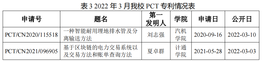 2022年3月,永利官网作为第一申请人,申请PCT专利共计2件,如表3所示。