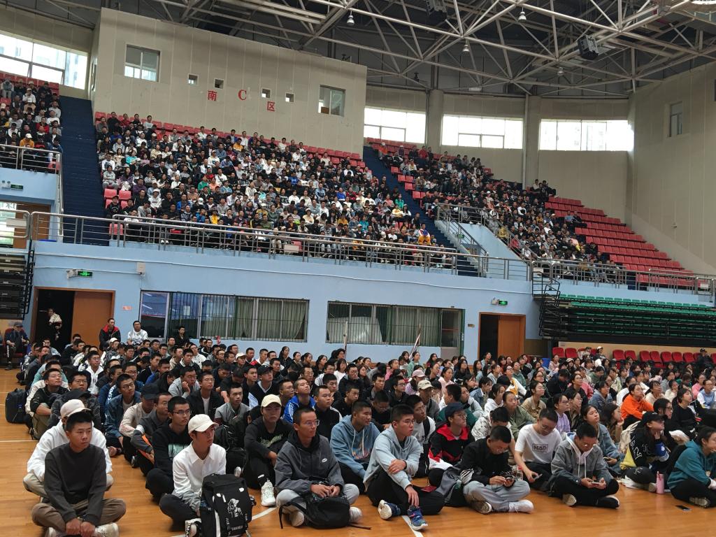 新学期新气象!永利官网2021级新生于10月13-15日,在金盆岭体育馆分9个时间段组织21级8000多名新生集中观看了:别样“课程思政”——新生大学体育视频“第一课”。