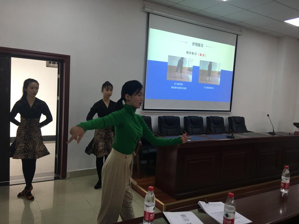 本次教学竞赛由上届参加过校级竞赛的张歌林和袁雪涛两位教师参加,她们在教学中通过不断反思、实践、磨练、总结中逐步提升自己的教学能力。本次她们采用说课的形式,将实践性强的《拉丁舞》和《散打》两门课程通过精美的PPT课件进行了详细讲解,并通过师生示范,给观众耳目一新的感觉。课堂上结合知识点巧妙融入思政元素,坚持知识传授、能力培养与价值教育相结合。充分展示了各自的教学风采和教学特色。