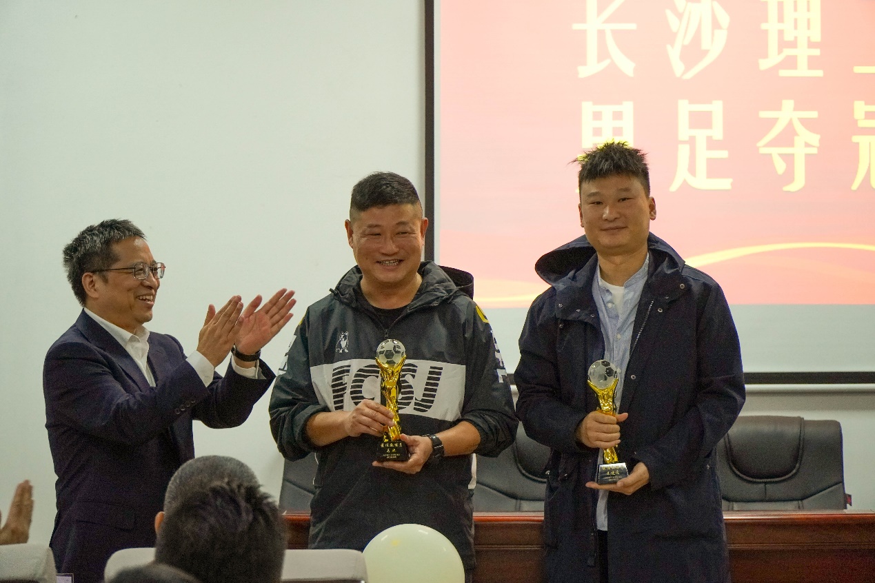 会上,与会人员分享了男子足球队夺冠历程和近年来参加各类大赛精彩进球集锦。