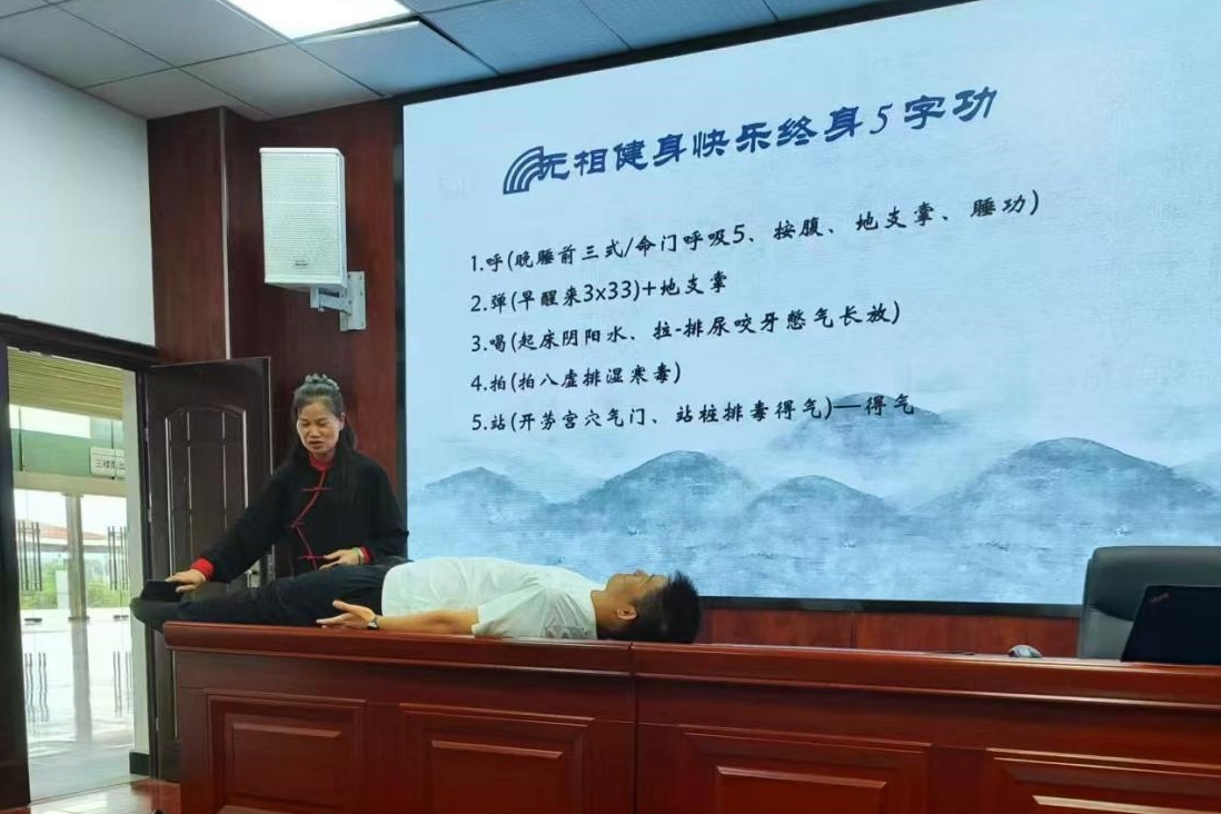本讲座聚焦当下学生体质普遍偏弱等健康隐患,旨在引导学生树立健康意识,掌握简便易行的健身方法。刘艳芳老师重点介绍了《无相健身》五字功—— “呼、弹、喝、拍、站”。该功法理念在于打破传统健身的形态束缚,将养生保健融入日常的“一呼一吸”之中,帮助人们用最短的时间守护生命健康,从而爱上运动,自觉践行“快乐终身”的目标。