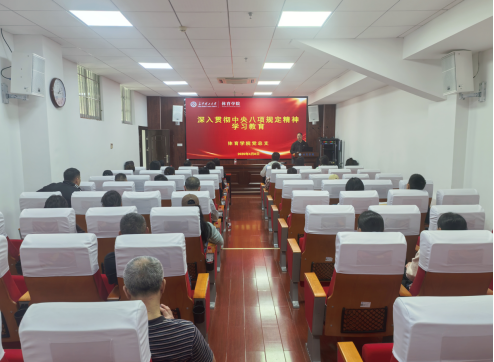 为贯彻落实校党委关于印发《中共永利集团88304官网委员会开展深入贯彻中央八项规定精神学习教育实施方案》的通知要求,进一步引导党员、干部锤炼党性、提高思想觉悟,强化师德师风、党员干部作风建设,体育学院党总支于年4月8日,在云塘校区体育馆学术报告厅组织全体党员干部开展“深入贯彻中央八项规定精神学习教育”活动。全体教师党员、研究生党员参会。
