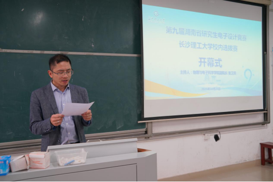 10月25日上午,“景嘉微杯”第九届湖南省研究生电子设计竞赛永利集团88304官网校内选拔赛在云塘校区文科楼A305正式拉开帷幕。开幕式由物理与电子科学学院副院长张卫兵教授主持,十一名校内电子信息类专家参加开幕式。