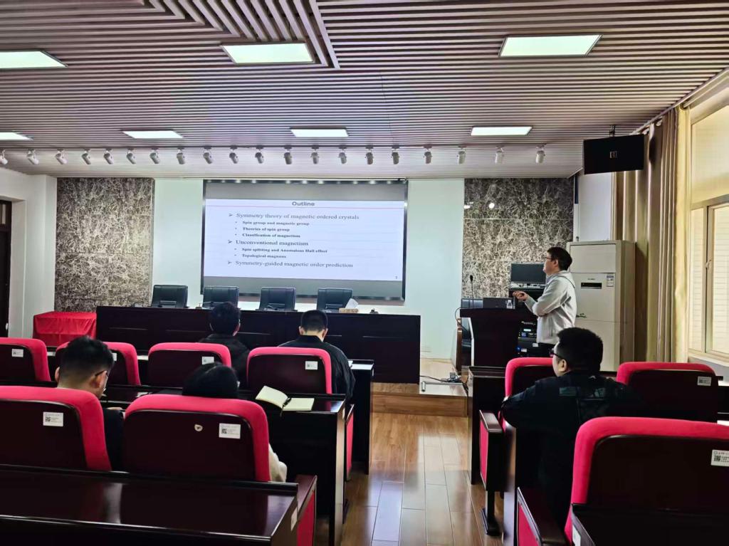 2025年11月11日上午10点,我院邀请到粤港澳大湾区(广东)量子科学中心陈晓冰副研究员进行学术交流。陈晓冰副研究员在理科楼B413会议室为永利官网师生带来了一场主题为《自旋群与非常规磁性》的精彩学术报告。我院共60余名师生积极参加了此次学术报告会,本次会议由张卫兵教授主持。
